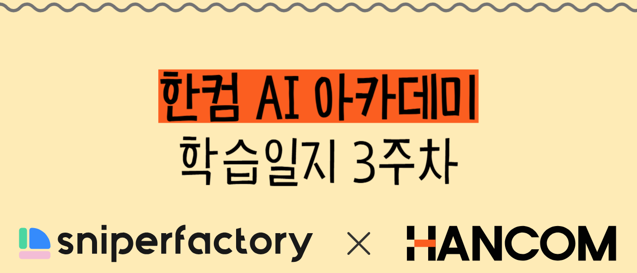 본 후기는 [한글과컴퓨터x한국생산성본부x스나이퍼팩토리] 한컴 AI 아카데미 (B-log) 리뷰로 작성 되었습니다.