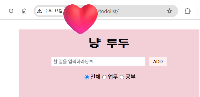 1~3번 모든 과정에서 내가 직접(of course with GPT) 여러 웹, 앱 페이지들을 만들었었다. 그리고 나는 자랑하는 걸 좋아하니까 당연히 개발을 잘 모르는(중요함) 친구들한테 자랑했다. 그런데 어떻게 자랑했느냐.. 캡쳐해서 자랑함... ㅠㅠ 노간지.. 그치만 이번엔 간지나게 URL 주소 보내주면서 직접 확인해보라고했다 껄껄 저번에 만든 냥이 투두 페이지 친구들한테 주소 넘겨줬당 헷 ㅋ 비록 도메인은 없어서 숫자로만 이루어진 URL이지만 뿌듯혀 그치만 aws 과금 이슈로 찐 배포는 못하고 구경만 시켜주고 수업 끝나면 아마 내 서버 닫을 것 같다.