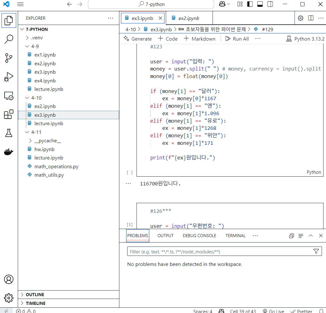 아직 파이썬 초반부라 뭐 그냥 문제 푼 게 다라서 학습일지에 쓸 말이 없다..
