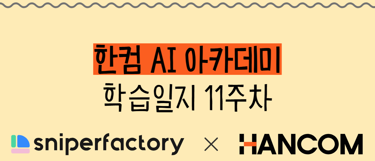 본 후기는 [한글과컴퓨터x한국생산성본부x스나이퍼팩토리] 한컴 AI 아카데미 (B-log) 리뷰로 작성 되었습니다.