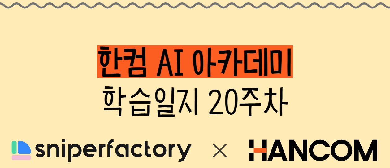 본 후기는 [한글과컴퓨터x한국생산성본부x스나이퍼팩토리] 한컴 AI 아카데미 (B-log) 리뷰로 작성되었습니다.
